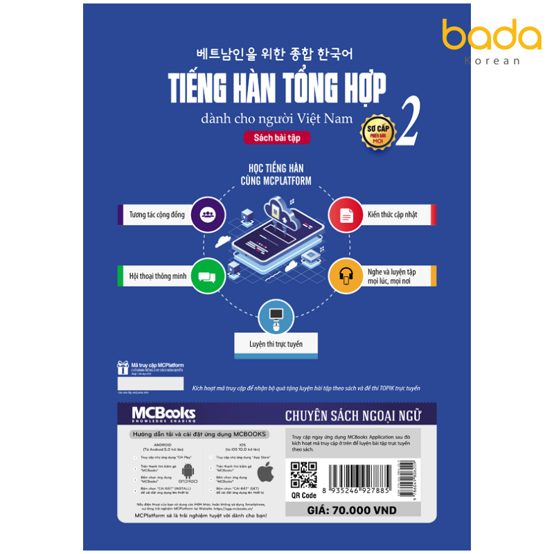 Bìa sau sách giáo trình tiếng Hàn tổng hợp, sách bài tập sơ cấp 2