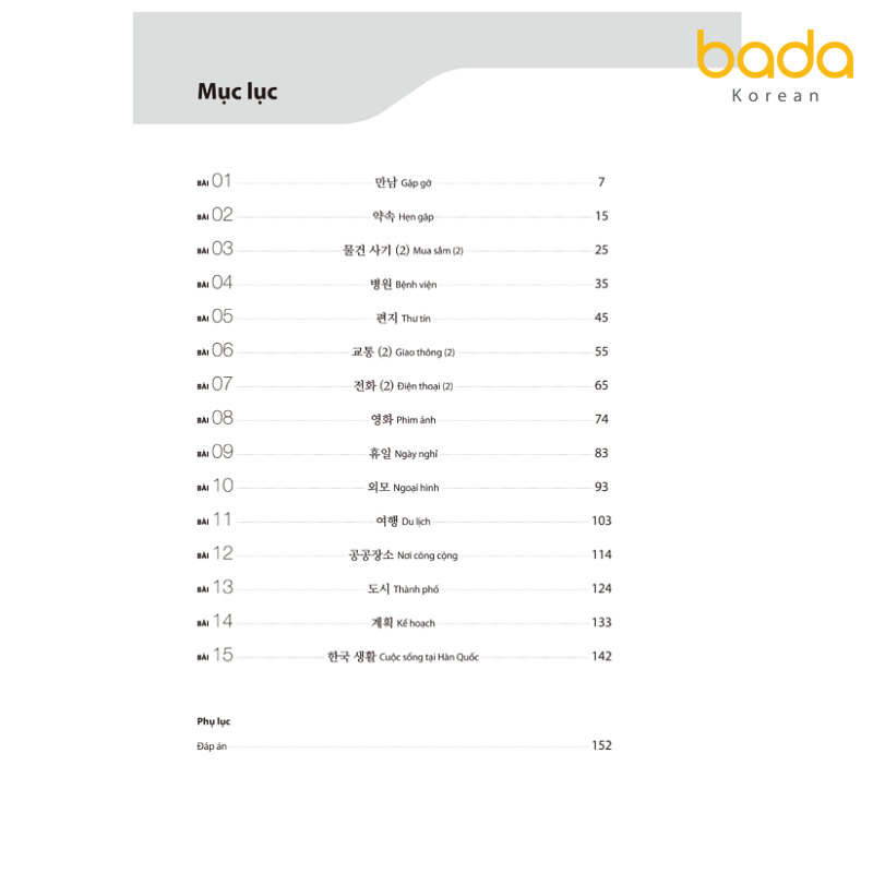Phụ lục sách giáo trình tiếng Hàn tổng hợp, sách bài tập sơ cấp 2